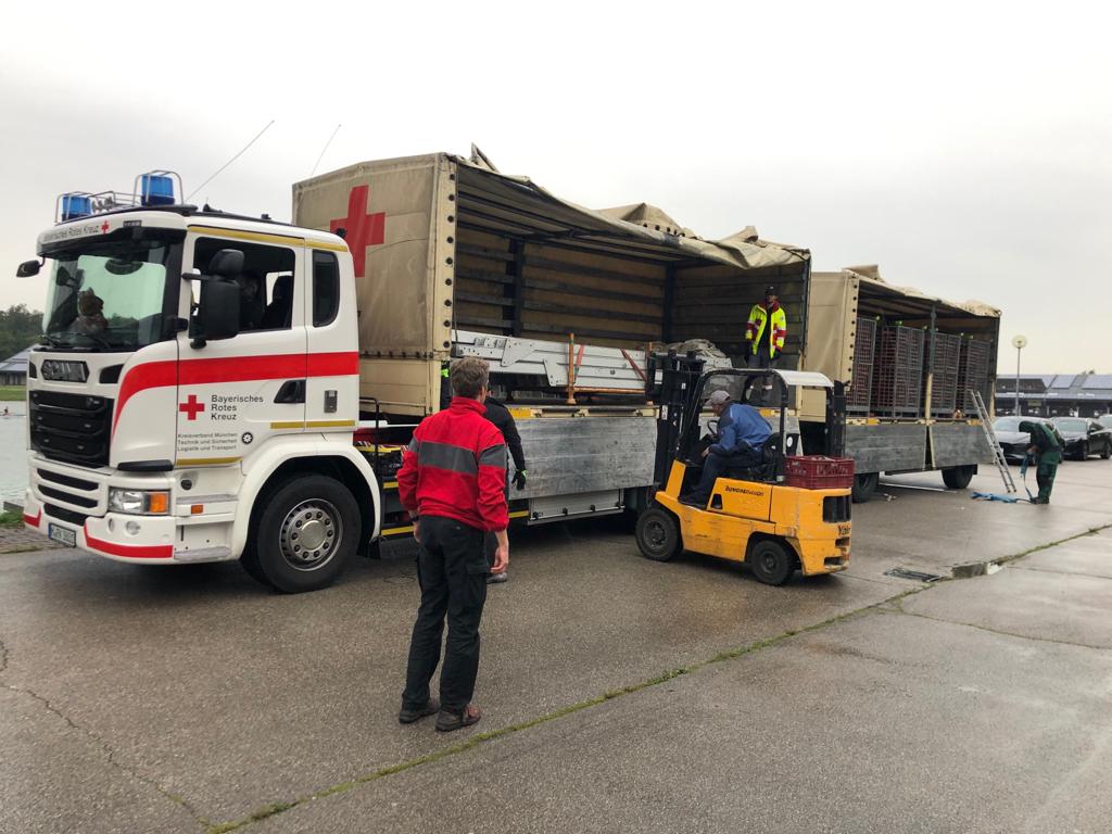 Am Sonntag wurde trotz des nassen Wetters der Rest des Großzeltes auf der Theresiewiese abgebaut und mithilfe des THW München Ost verladen.
