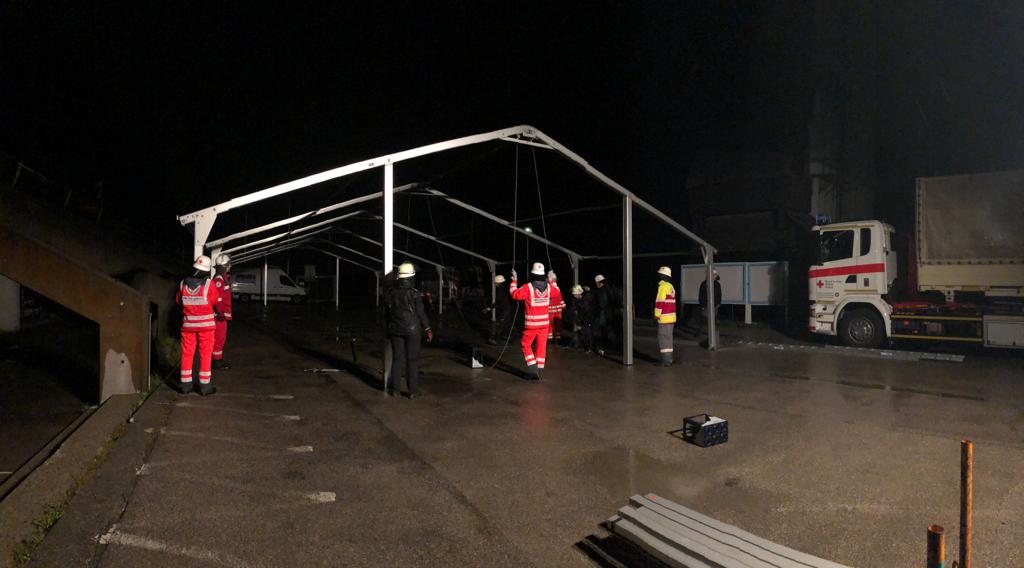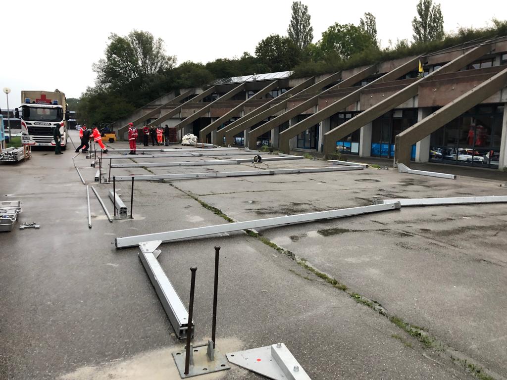 Der Aufbau erfolgte am 5.9. und dauerte etwa sechs Stunden. Hierbei wurden die sieben Helfer des AK T+S von fünf Mitgliedern der Bereitschaft Pasing tatkräftig unterstützt. Kurz vor Mitternacht war der Aufbau abgeschlossen, sodass sich alle Helfer, vom Dauerregen durchnässt und nach einem langen Arbeitstag erschöpft, auf den Heimweg machen konnten.