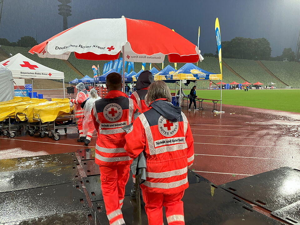 Wir waren bereits am Vorabend tätig, um diverses Sanitätsmaterial und andere Ausrüstung ins Olympiagelände zu transportieren. Zudem unterstützten wir beim Aufbau mehrerer Zelte für die Unfallhilfsstelle im Olympiastadion.
