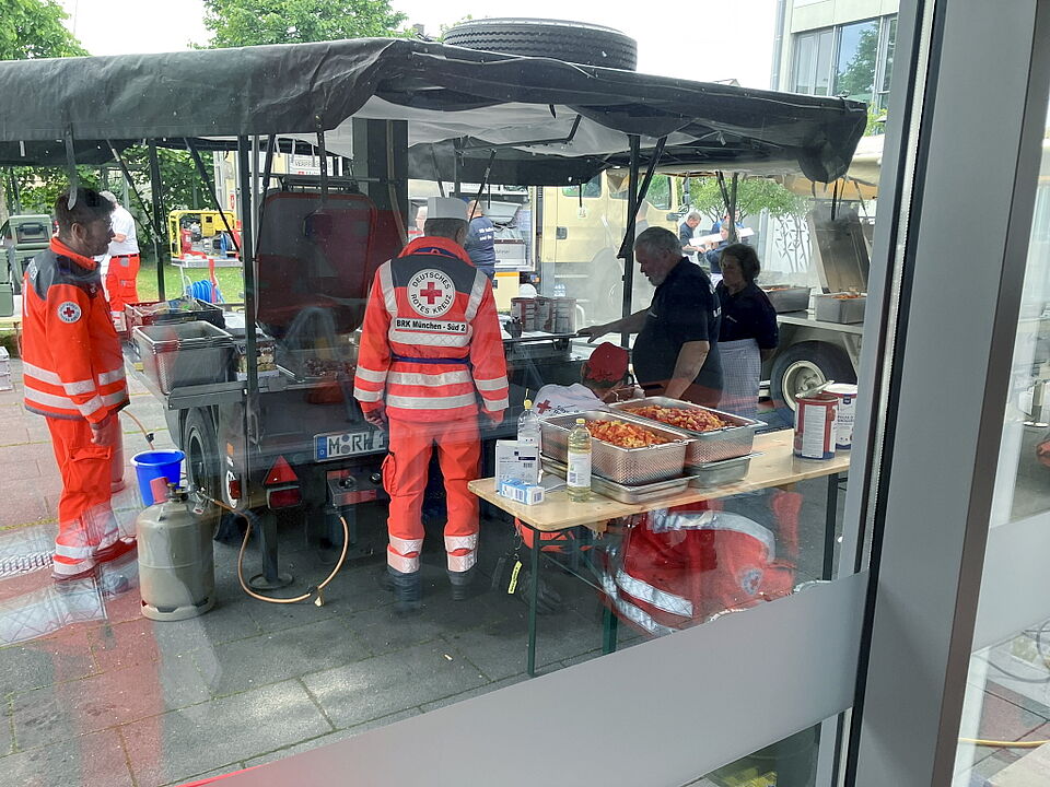 Am Sonntag, den 2. Juni wurde dann die SEG Technik und Sicherheit München alarmiert, um als Teil des Hilfeleistungskontingents Oberbayern nach Neuburg an der Donau auszurücken. Während des fünftägigen Einsatzes übernahmen die HelferInnen verschiedenste logistische und technische Aufgaben, um die Versorgung der umliegenden Notunterkünfte für die evakuierten Betroffenen sicherzustellen. In enger Zusammenarbeit mit den anderen Einheiten des Hilfeleistungskontingents unterstütze die SEG Technik und Sicherheit insbesondere bei der Einrichtung von Strom-, Wasser-, und Gasversorgung für mehrere Feldküchen, auf denen drei Mal täglich mehrere hundert Mahlzeiten für die Betroffenen zubereitet wurden. Ein weiterer Tätigkeitsschwerpunkt lag in der Beschaffung und dem Transport von Lebensmitteln aus Großhandelsgeschäften in der Umgebung.
